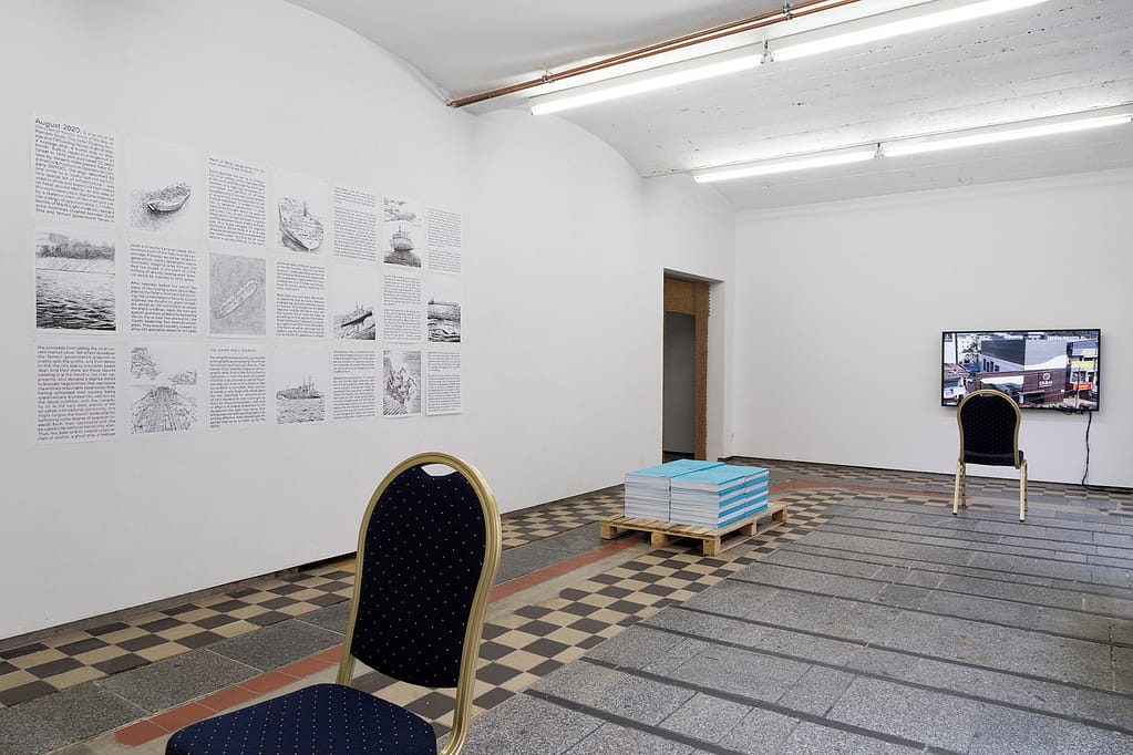 Hamburg based artist Annette Wehrmann (1961–2010) worked on a long-term project that explored urban space, titled Ort des Gegen. It followed the idea that the quality of a city depends on the number of undeveloped, freely available areas. She concluded that, under neoliberal conditions, the “Ort des Gegen” is able “to take the form of a thorough refusal of exploitation”. It becomes the “flipside” of utopia, “a place, where waste sediments and is not being disposed” (from Annette Wehrmann’s text Ort des Gegen, 2002). The exhibition includes five gouaches from the series as well as the foam sculpture Nein.