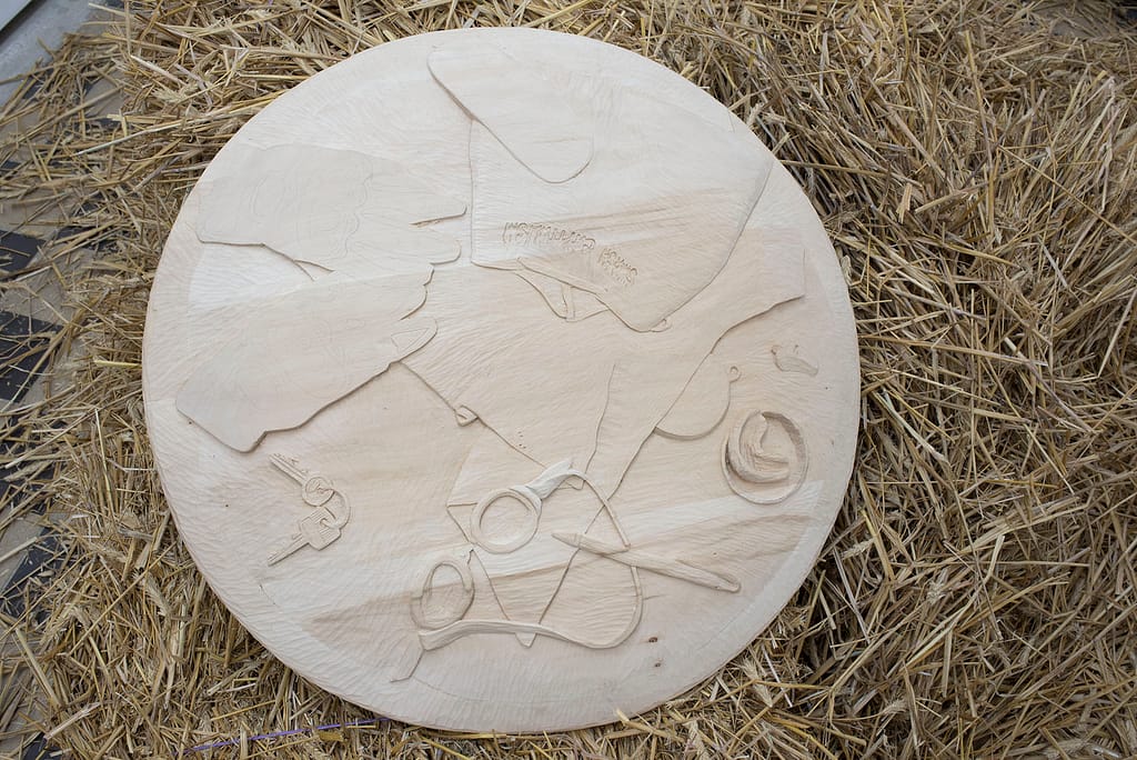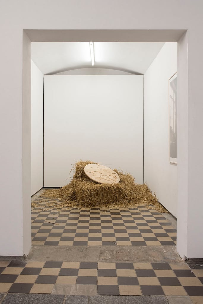 Alongside Amelie von Wulffen’s collaboratively produced video works, the exhibition presents three photo collages depicting buildings in East Berlin reflecting her enthusiasm for the Soviet modernism and the remaining parts of a shop window installation from 1996. The plywood figures depict both found and invented logos of manual craft’s companies.