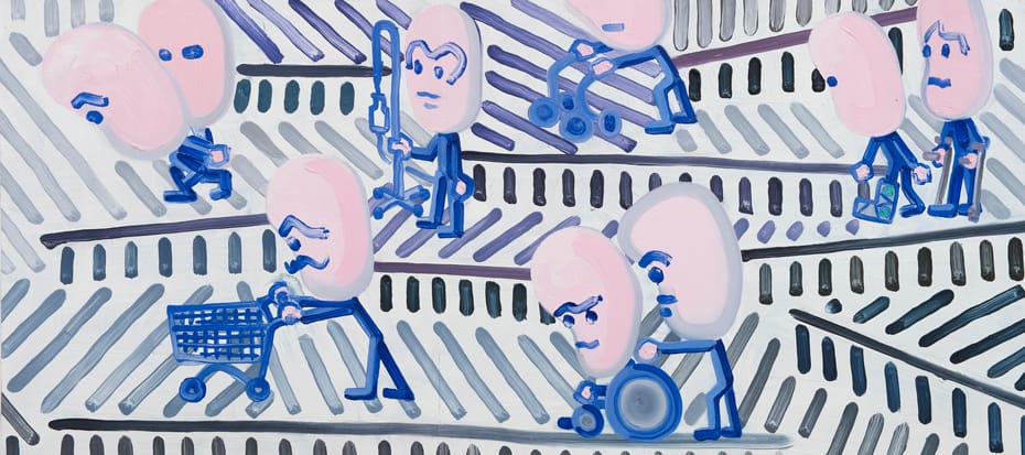 Amelie von Wulffen, born 1966, lives and works in Berlin, studied at the Academy of Fine Arts in Munich. Her practice entails painting, collage, drawing, and installation. She was represented at the 50th Venice Biennale and Manifesta 5.