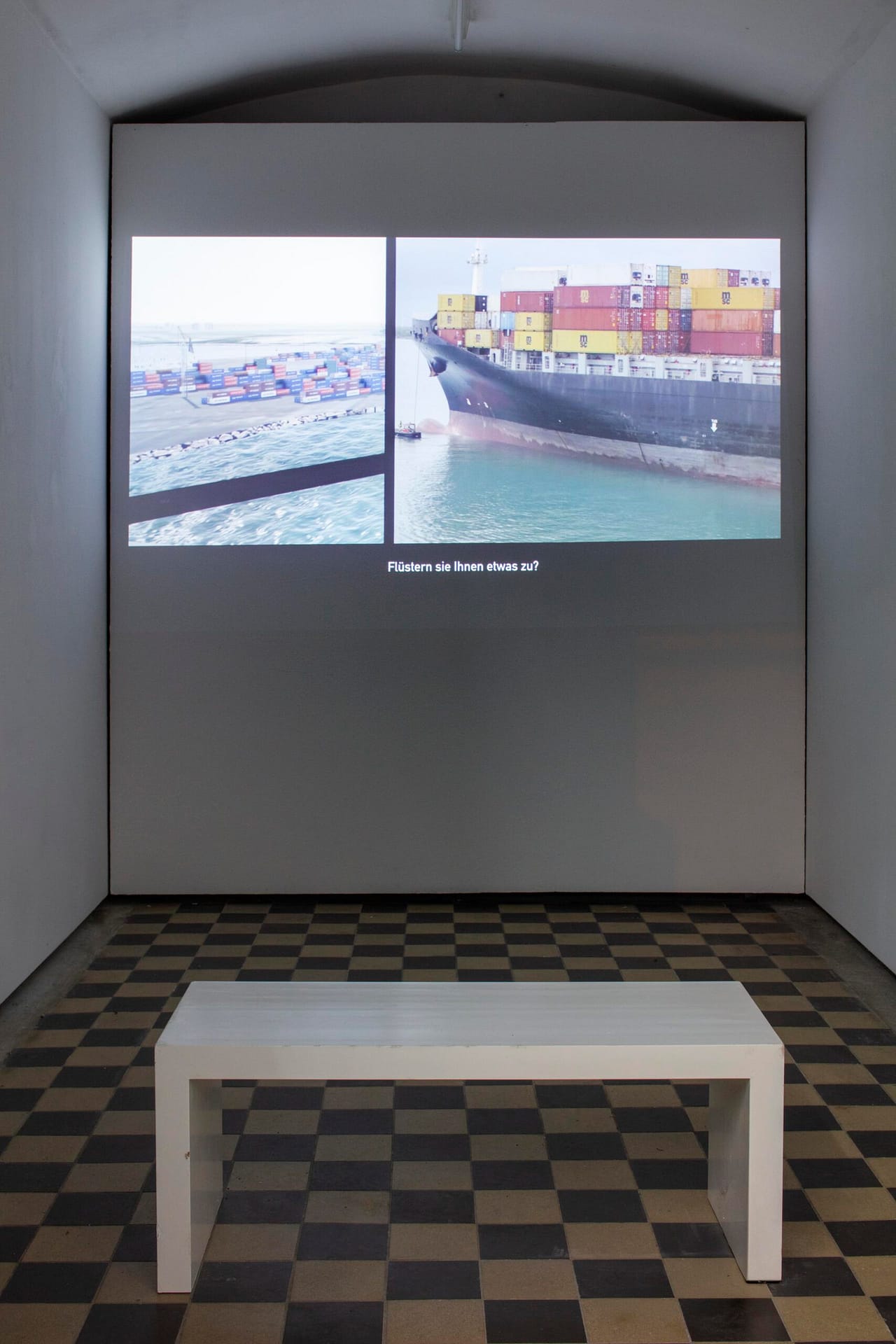 In addition to the presentation of two video works, the exhibition shows elements of the set design for a future film. In its construction of an artificial yet seemingly natural social reality, the film reflects on the global system of capitalism, behind whose surface the acting subjects seem to disappear.