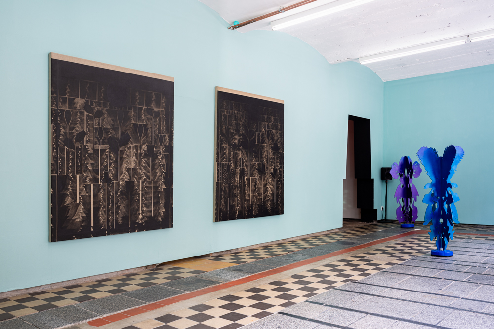 Die Arbeiten beider Künstler*innen verhandeln elementare Fragen des Rechts – Anike Joyce Sadiq im Kontext des deutschen Kolonialismus, Thomas Locher im Zusammenhang des Krieges und der Frage ob Soldaten als potentielle Mörder bezeichnet werden dürfen.