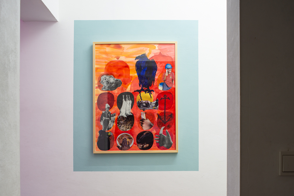 In ihrer Duo-Ausstellung präsentieren Charlotte Bonjour und Nadja Abt Arbeiten aus den letzten 2 Jahren. Beide Künstlerinnen gehen von Geschichten aus, die als Material für Collagen verwendet werden: In Charlotte Bonjours Arbeiten folgen wir von Ängsten geplagten Handys in ein surreales Universum. In den in Portugal entstandenen Arbeiten Nadja Abts kämpft eine Seefrau gegen die sie umgebenden patriarchalen Systeme.